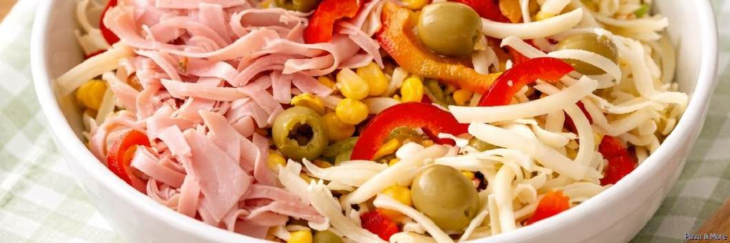 Salat, Tomaten, Gurken, Mais, Ananas, gebratenes Hähnchenbrustfilet, gekochtes Ei