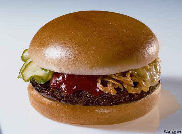 Hamburger würziges Rindfleisch, Gewürzgurken, Zwiebel, Ketchup und Burgersoße. einfach klassisch |