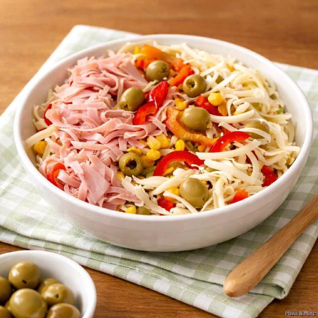 Salat, Tomaten, Gurken, Mais, Ananas, gebratenes Hähnchenbrustfilet, gekochtes Ei