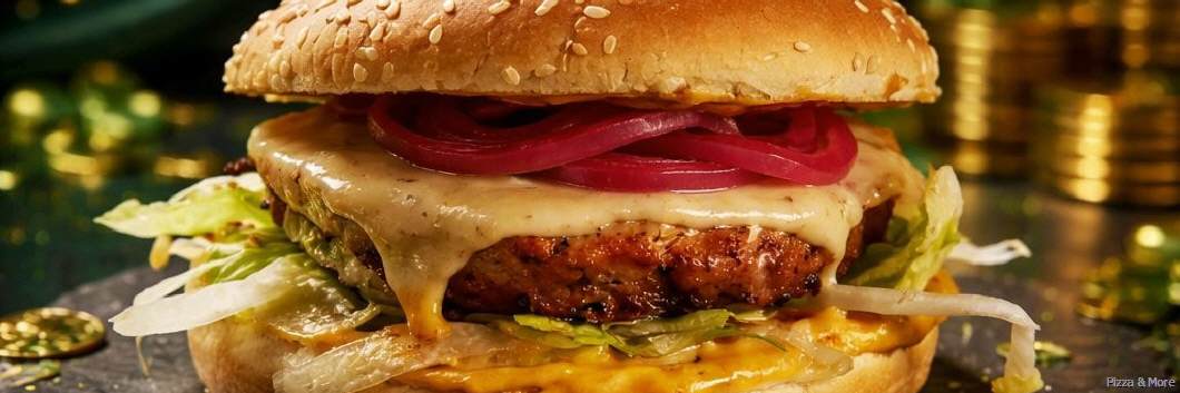 hausgemachtes Kassler Patty, Kyäse, Salat, süß-saure Zwiebeln