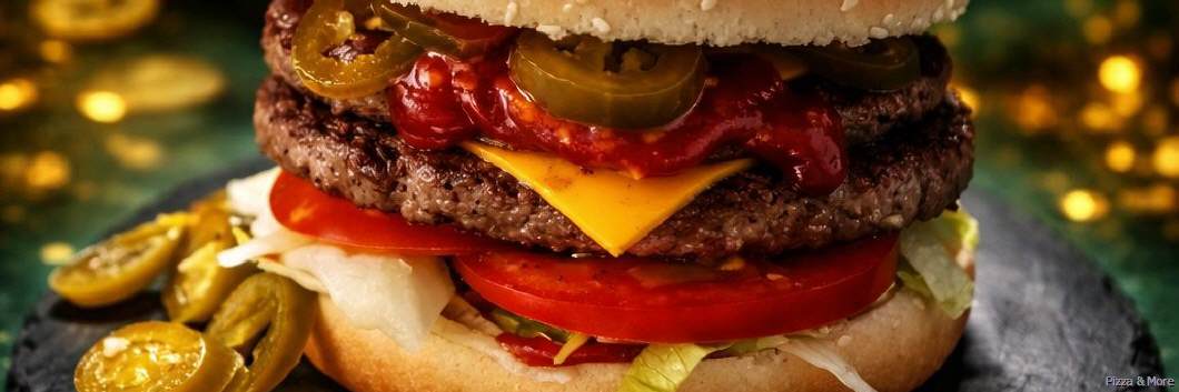ca. 200 g Rindfleisch, Eisbergsalat, Gurke, Tomate, Käse Jalapenos & Chilisauce
